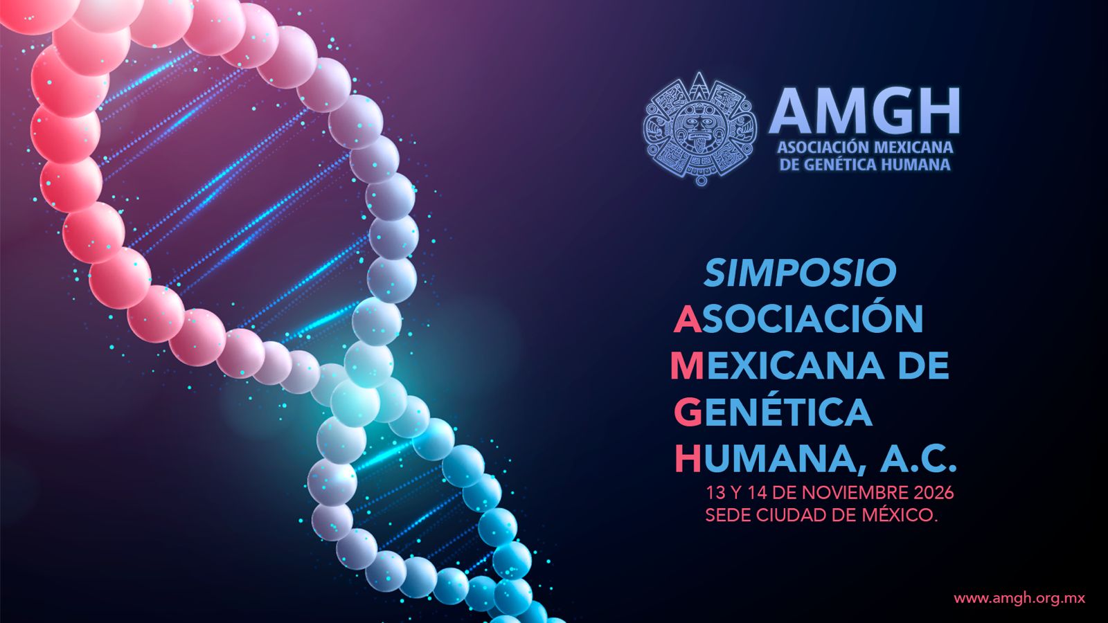 La Asociación Mexicana de Genética Humana (AMGH) te invita cordialmente a asistir al simposio AMGH, con sede en la Ciudad de México los días viernes 13 y sábado 14 de noviembre.